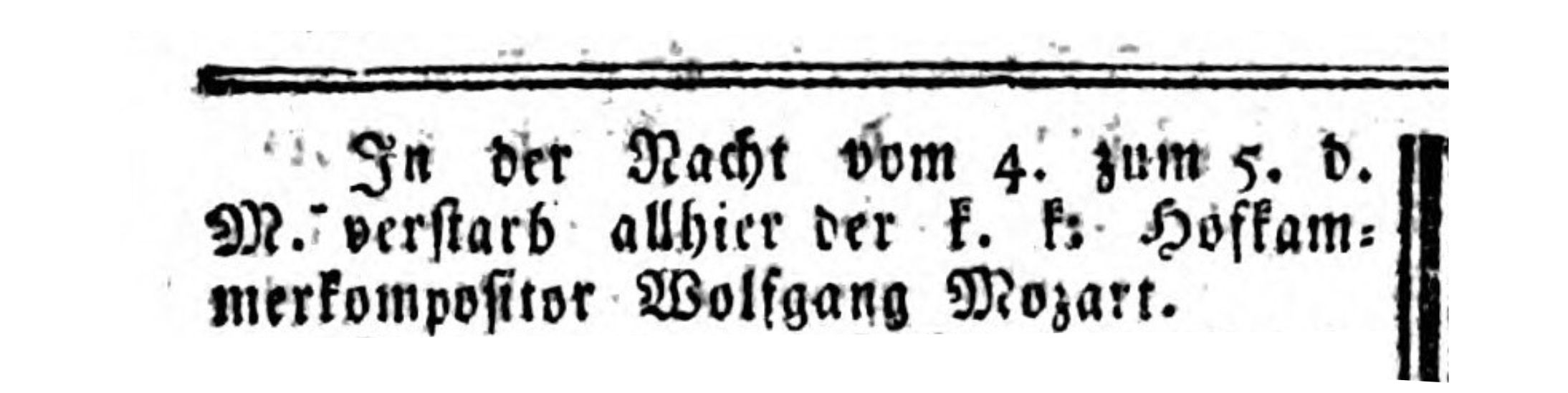 „In der Nacht vom 4. zum 5. des Monats verstarb alshier der k.k.Hofkammerkompositor Wolfgang Mozart.“ So knapp berichtet die Wiener Zeitung vom Ableben eines der größten Musiker seiner Zeit. Mehr als zwei Jahrhunderte später begleiten wir Mozart auf seinen letzten Wochen im winterlichen Wien. Sein plötzlicher Tod hat die Gerüchteküche zum Brodeln gebracht. Mit Hilfe von zeitgenössischen Schilderungen und ärztlichen Gutachten versuchen wir Licht in die manchmal skurril anmutenden Spekulationen um seinen viel zu frühen Tod zu bringen und historische Fakten sprechen zu lassen. Ebenso versuchen wir das Verhältnis zwischen Mozart und Salieri und auch weitere zahlreiche Ungereimtheiten um seinen viel zu frühen Tod zu klären. |